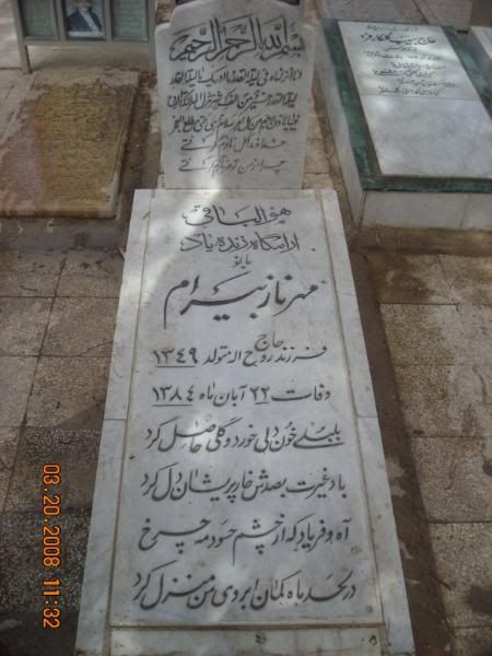 Today was the toughest day for me to stomach in a long time, whether it be here in Iran or at home in the US. My uncle came by to pick me, my father, and my cousin Dorsa up to go out and visit some of the historical sites here in Shiraz that we had not yet seen. Instead of going to see some historical sites, my uncle decided to take us to the grave sites of my aunt, Nozy, and my grandfather who died nine years ago on my birthday. My cousin (and her brother for that matter) unfortunately lost their mother about two years ago due to a stroke. I knew we were going to visit these sites at some point, but the idea was that the kids would not be around when we went, as my father and I did not want to upset them. So we went anyways, and left Dorsa in the car. My uncle told her we were going to see some ancient mosque, or something along those lines. To me, it was utter BS, especially coming from the mouth of someone who is as religious as he is. To say that I am angry right now is a true understatement. The thing is that my cousin is not stupid, I know she knew what was up because she's obviously been to the graveyard. My aunt is buried in front of my grandfather, and my grandfather is buried to the right of his father, my great grandfather. I've posted some pictures below for you to see. I am told that I am an exact replica of my grandfather (just taller) both in looks and mannerisms. I am glad I've finally been able to pay my respects to both of these individuals, however my anger and sorrow is geared toward the fact that my uncle outright lied to my cousin. I hope you all are doing well and I'll likely put up my next post after tomorrow, as tomorrow is the start of the new year. Eid et oon Mobarak, or Happy New Year in Farsi.